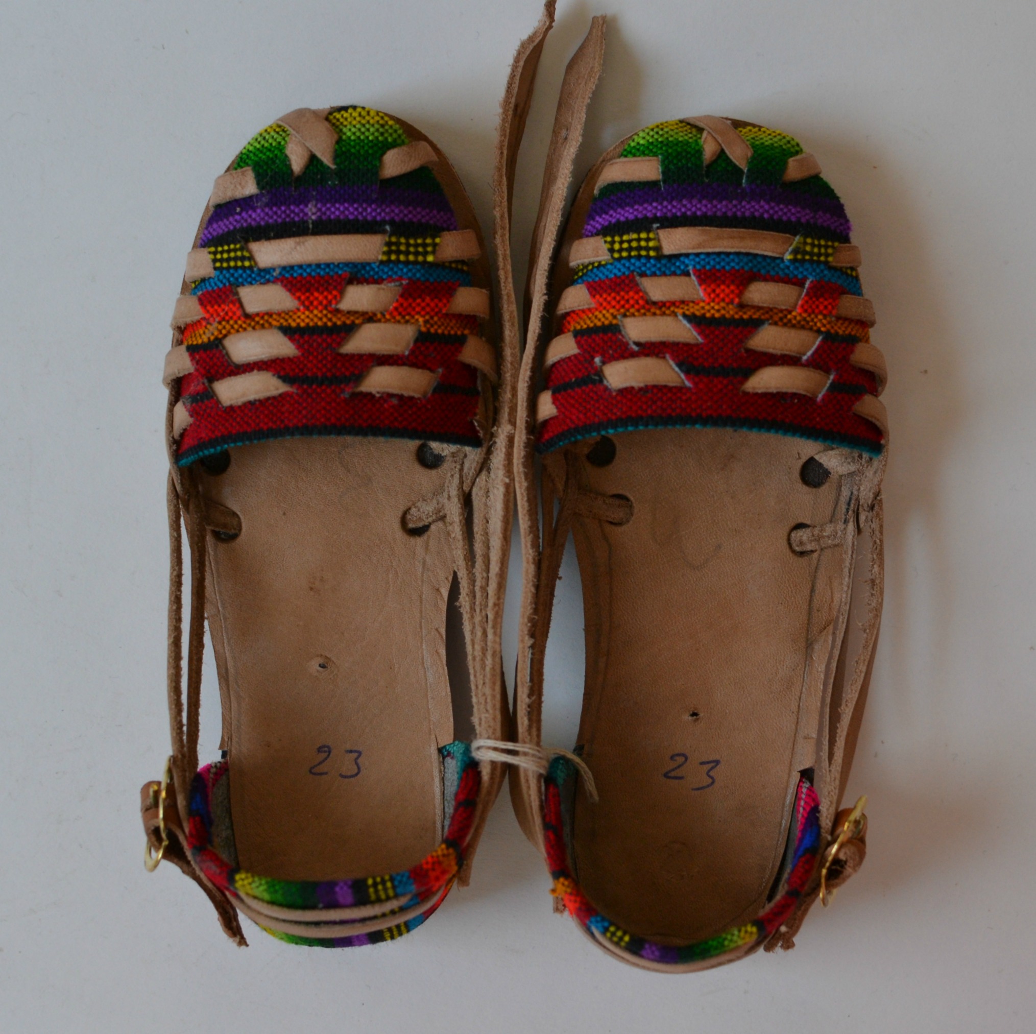 Authentic caites/sandals handmade by artisans in Guatemala. The inside sole measures about 5.625" therefore these would also fit a US size 7.5